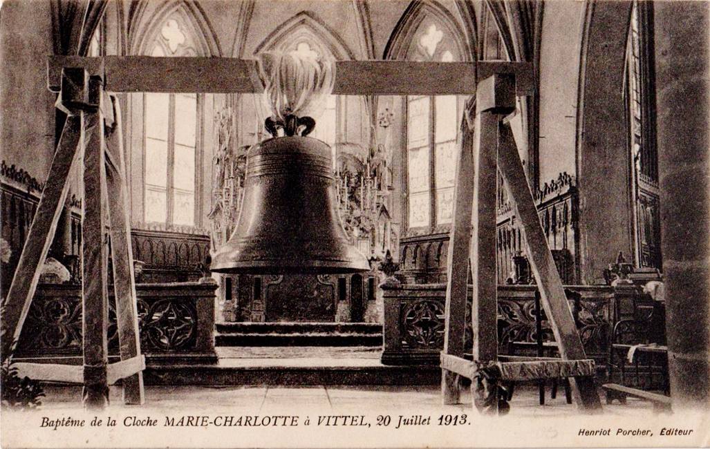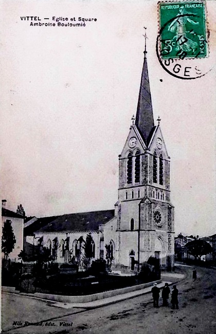 en 1920, il est en partie détruit par un incendie. Que vous l’appeliez In pasturis Vitelli, en 1195, Vitel, au XI° et XII° siècle, voire, Apud Vytel villam, De Witello, Vittel, Viltel, Vitels, Vitelz au XIII° siècle, puis, de 1335 à 1402, Viteil, Viteilz, « On ban Saint Piere de Viteil », De Vitello Sancti Remigii ou De Sancto Privato de Vitello, nous sommes à Vittel, dans les Vosges en Lorraine, région Grand Est.