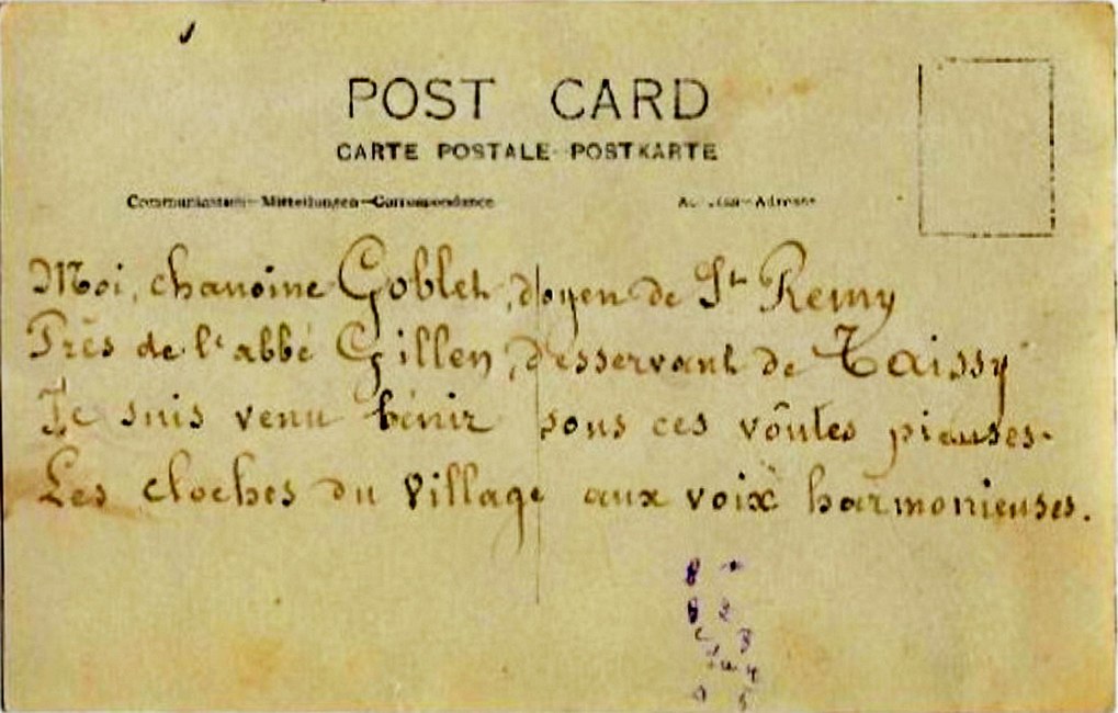 Deux nouvelles Taissotines naissent des mains du saintier de Robécourt, Ferdinand FARNIER. En 1911, Germaine et Jacqueline sont bénies par le chanoine Gobler, doyen de St Rémy. Quelques jours plus tard, elles rejoignent leur ainée du XIII° siècle.