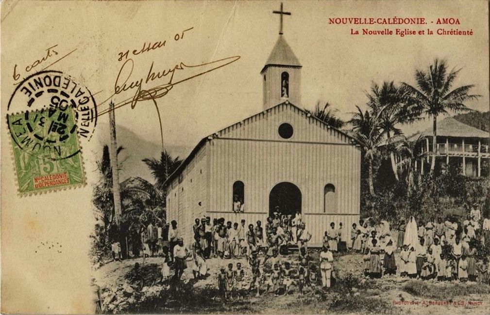 La première mission est fondée dans la région par les pères maristes à Wagap en 1856. Elle est plus tard, en 1877, déplacée sur la rive droite de l'Amoa, à Tyè. Wagap accueille à la place des frères de l'Ordre cistercien de la stricte observance (« trappistes »), qui sont déplacés à la tribu de Tiwaka en 1889. Ce monastère est cependant fermé à la fin de cette année2. Les trappistes sont immédiatement relayés à Tiwaka par d'autres maristes, dont le père Stéphane Marie Berne (1856-1923), pour fonder l'« Œuvre (ou Asile) de Saint-Léonard » chargée de venir en aide aux forçats libérés3. La mission de Tyè, avec son école pour Mélanésiens et son église inaugurée en 1899, acquiert une grande influence sur les populations locales de Poindimié. Elle introduit la culture du café