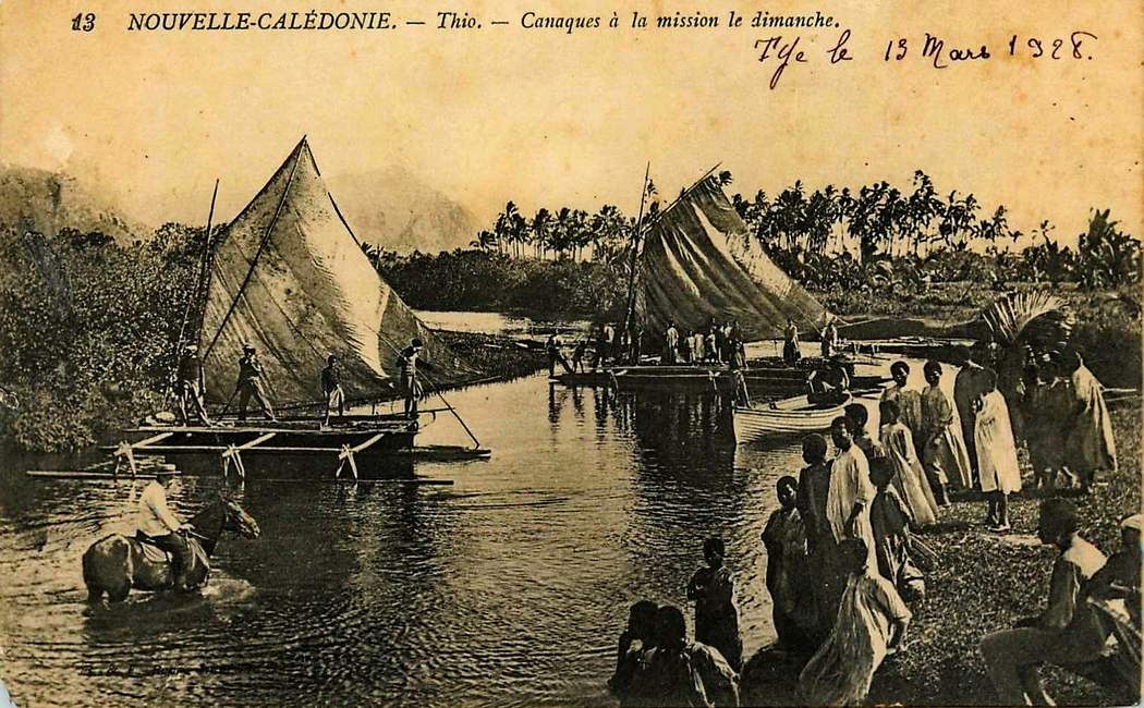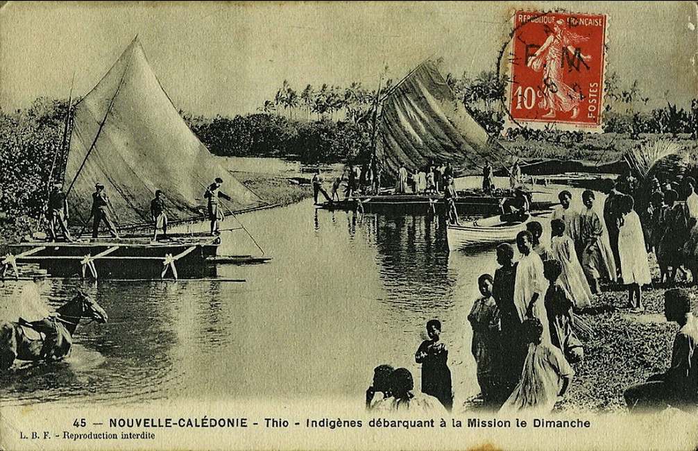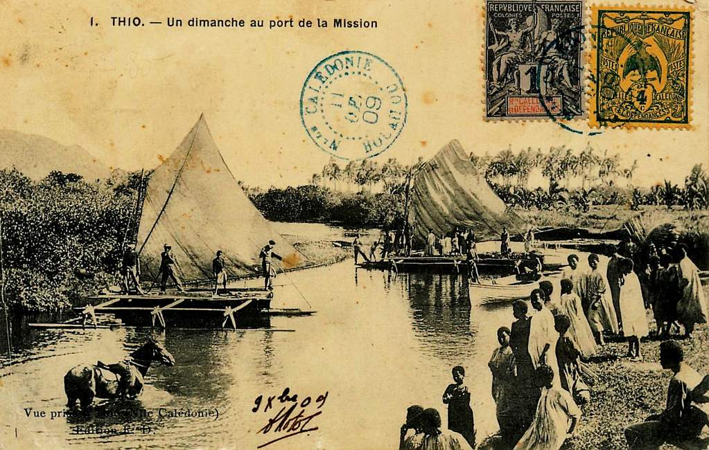 Une mission catholique est créée sur la rive droite de l'embouchure de la Thio en 1868, par le père mariste Dominique Moris (1834-1907). La construction d'une église est lancée par le père Simonin en 1880, selon les plans du R.P. Vigouroux, et inaugurée en 1913. Le clocher, rajouté au début du XXe siècle, a été remanié dans les années 1920 pour prendre sa forme hexagonale actuelle. Deux tourelles rondes coiffées de poivrières réalisées par la SLN sont ajoutées par la suite.