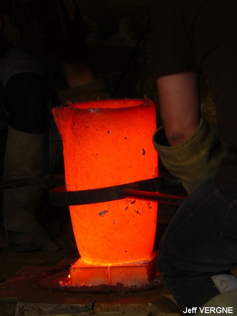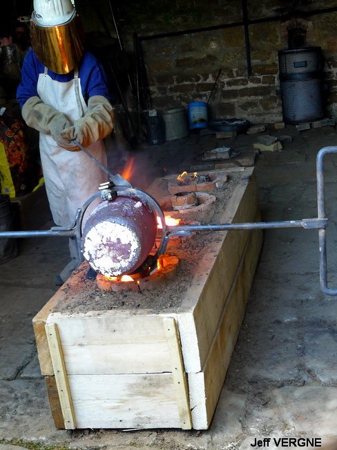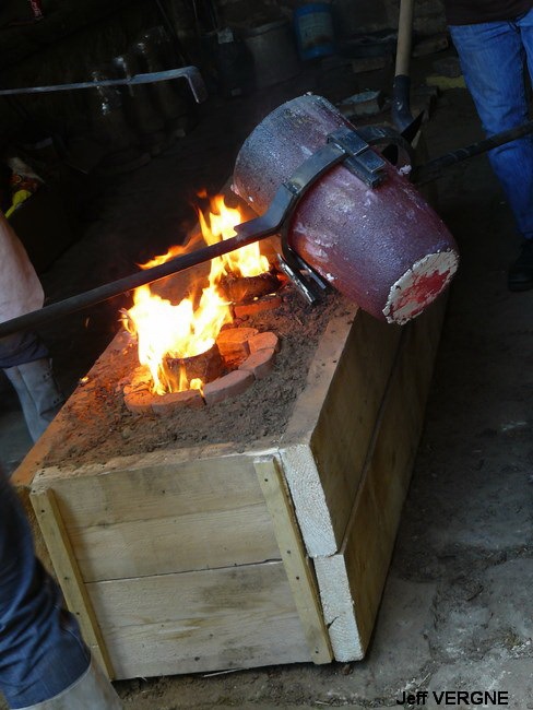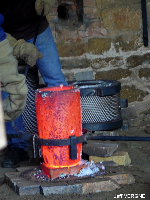 Chauffe d'une trentaine de kilo de cuivre rouge et d'étain
