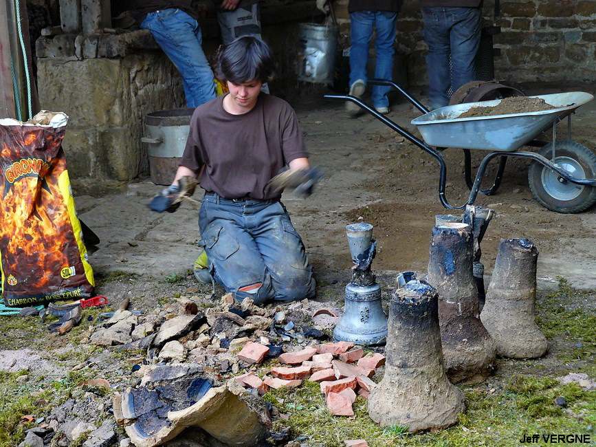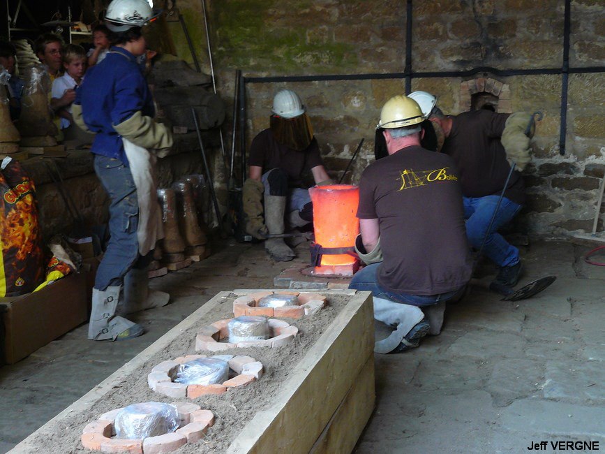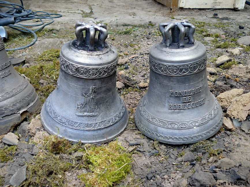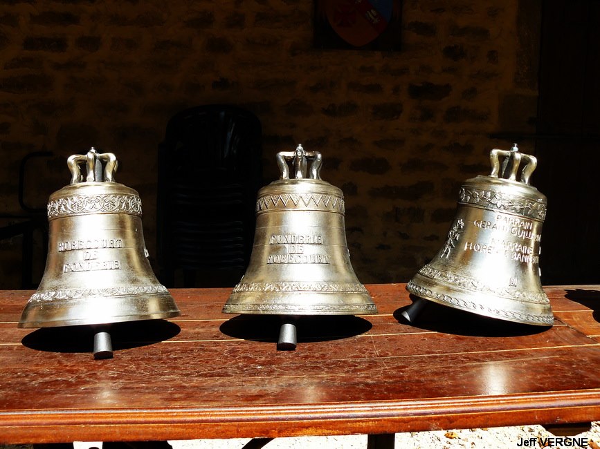 Le 22 juillet 2018 à Robécourt, une équipe bénévole de la fonderie SAS BOLLÉE, Charlène, Julien, Grégory et Michel, ont procédé à la coulée de 11 cloches de 6 kg chacune. Les différentes opérations se sont déroulées sous l’œil attentif d’un associé de la SAS BOLLÉE, le fondeur strasbourgeois, André Voegelé, maître d’œuvre des différents moules.