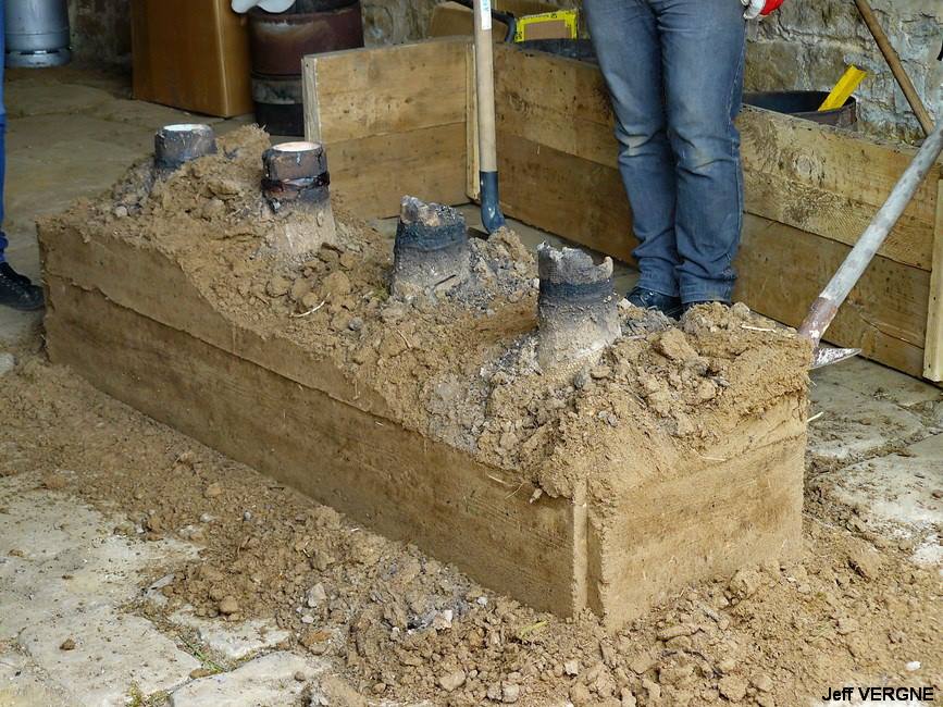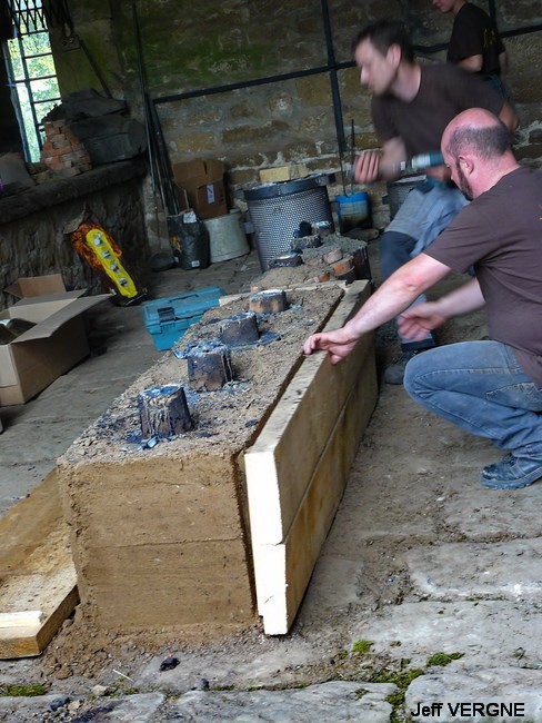Réalisés en atelier, les moules sont livrés le matin même, avec le four, les outils, caissons d’enterrage… pour les 3 coulées, sans oublier les démoulages.