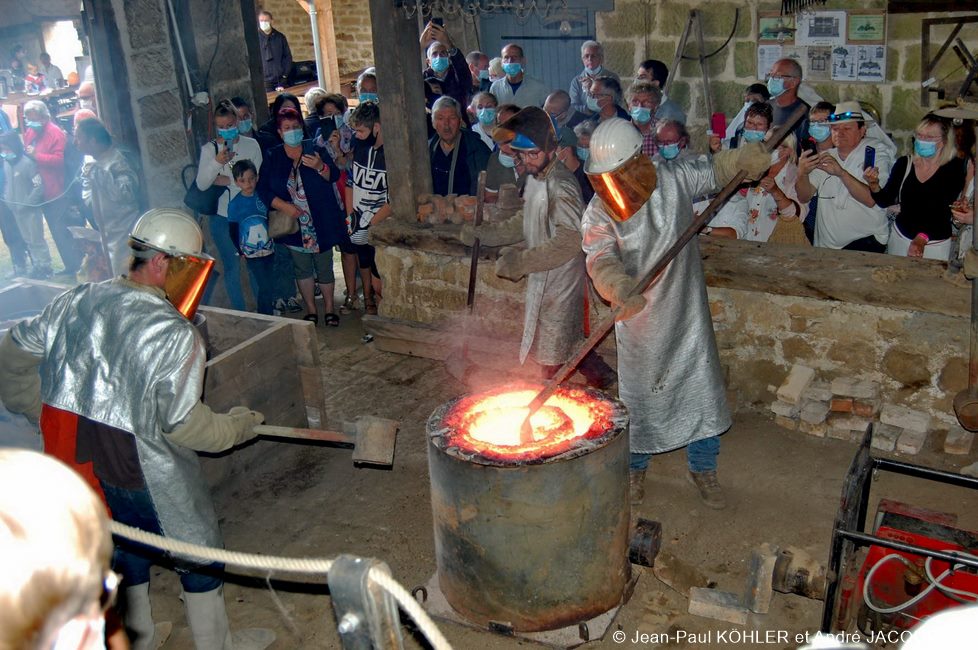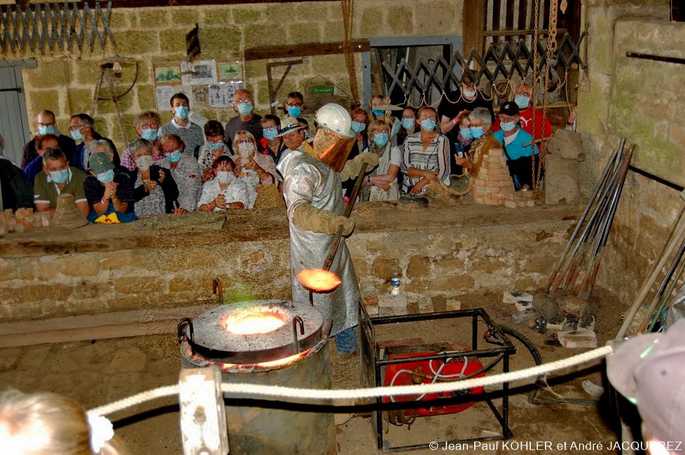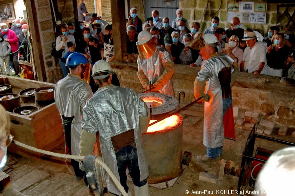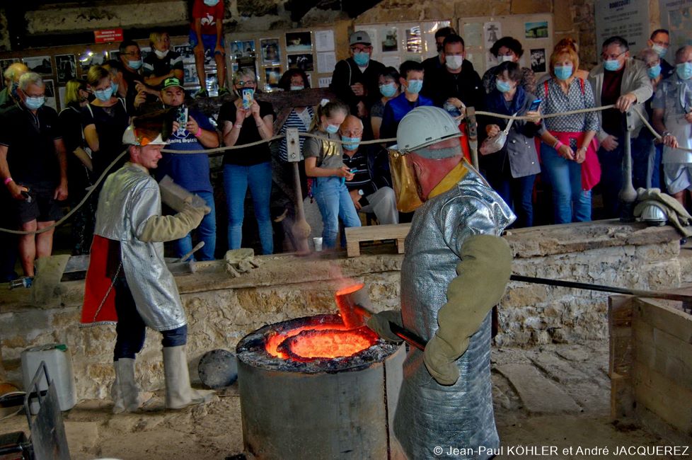 Si en 2020 aucune coulée n’a pu être effectuée, pour cause de Covid-19, cette année les fondeurs échappent au masque. Effectivement, ce dernier n’apprécie pas les 1.200° du bronze.