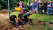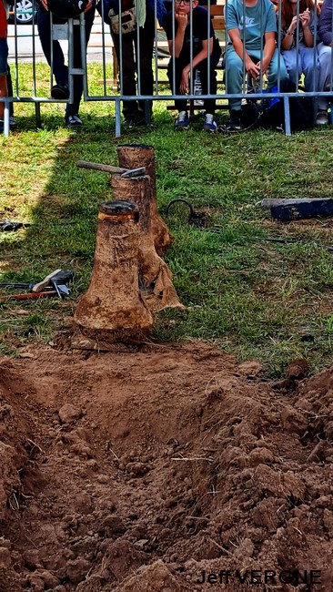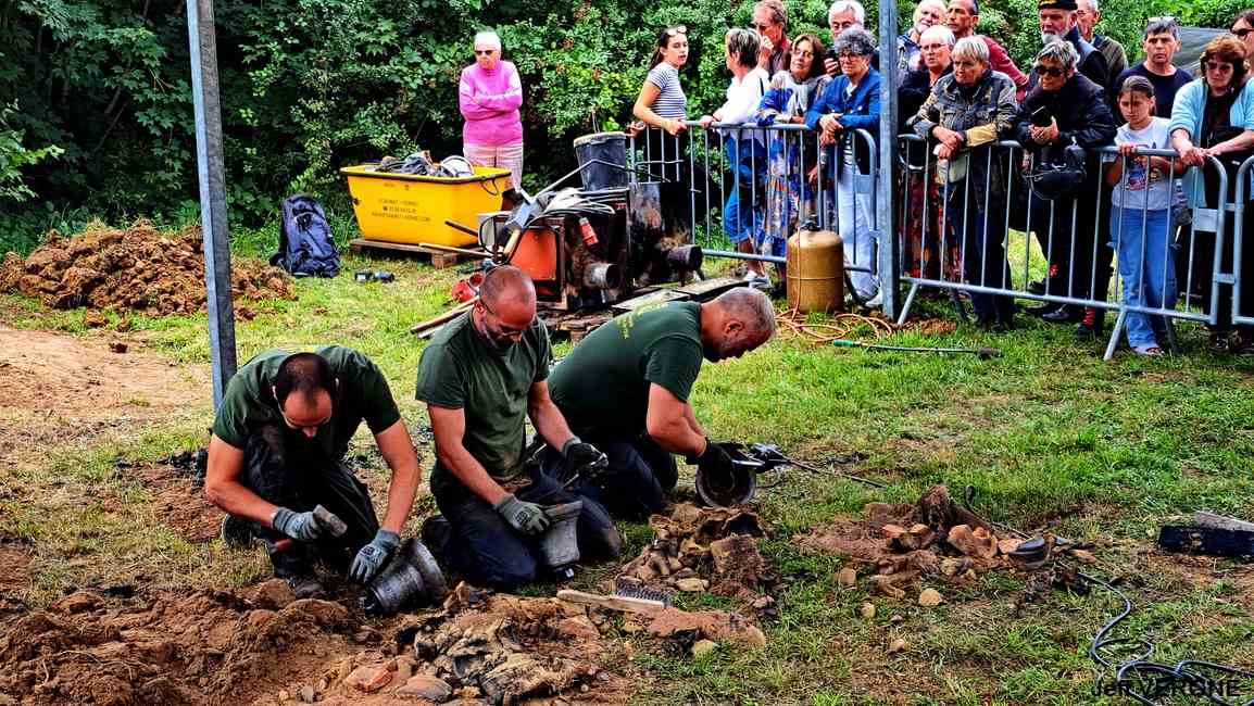 Après des agapes bien méritées, tant pour les fondeurs que pour les participants, le métal ayant refroidi près de 3 heures, les moules sont déterrés et brisés, laissant apparaitre les nouvelles roberticurtiennes. Tout au long de ces opérations, Julien dispensait explications et anecdotes, fort appréciées par l’auditoire. Toujours pour des raisons de sécurité, seul le grand four à réverbère était visitable par les spectateurs, sans oublier, entre autres, sa grue de 12 tonnes de 1847.