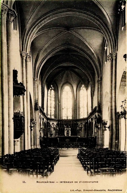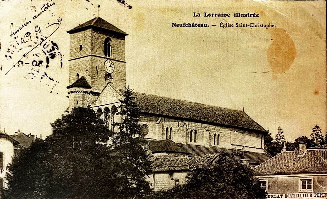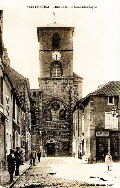 L’abbé de Saint-Mansuy de Toul, Théomar, fait édifier une église au XII° siècle qui est entièrement reconstruite dans la 1ère moitié du XIII° siècle. Un siècle plus tard, l’église Saint-Christophe de Neufchâteau reçoit une chapelle au sud du porche et voûtement de la 2ème travée de la chapelle au nord du chœur, une 2ème travée au sud du cœur fin XV° siècle, début XVI°, puis voûtement des 3ème et 4ème travées des bas-côtés….