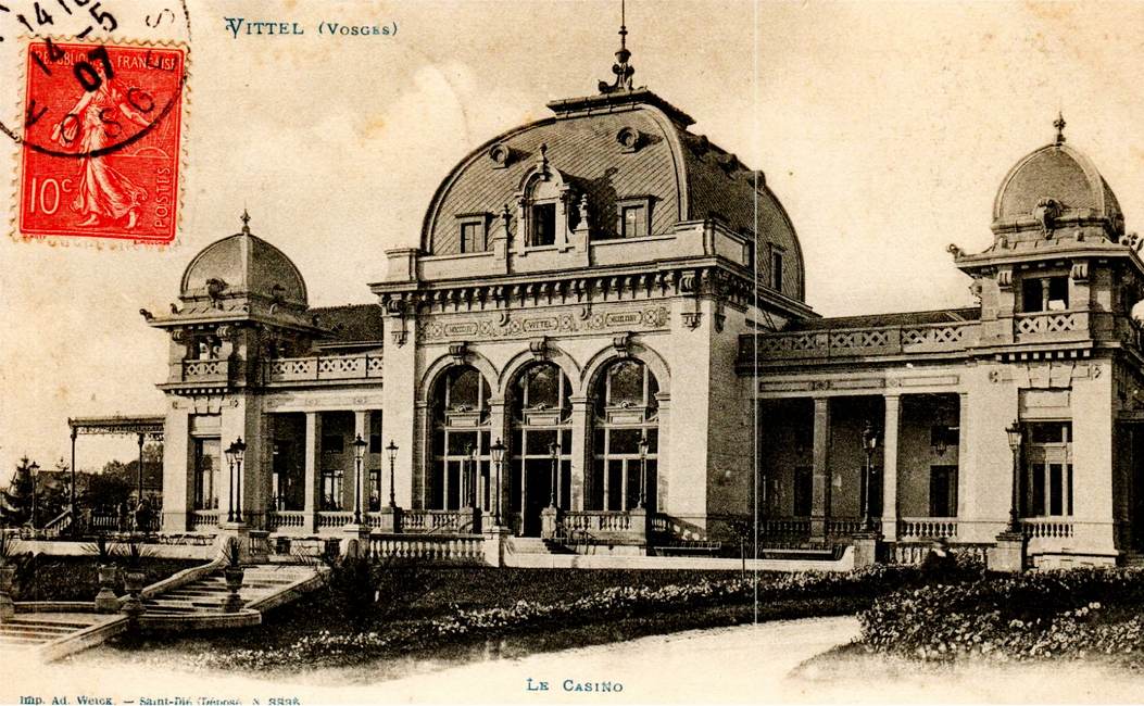 en 1920, il est en partie détruit par un incendie. Que vous l’appeliez In pasturis Vitelli, en 1195, Vitel, au XI° et XII° siècle, voire, Apud Vytel villam, De Witello, Vittel, Viltel, Vitels, Vitelz au XIII° siècle, puis, de 1335 à 1402, Viteil, Viteilz, « On ban Saint Piere de Viteil », De Vitello Sancti Remigii ou De Sancto Privato de Vitello, nous sommes à Vittel, dans les Vosges en Lorraine, région Grand Est.