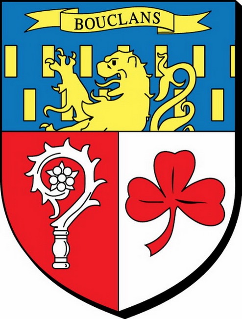"Coupé, au I : d'azur, chargé d'un lion naissant d'or, brochant sur un semé de billettes du même ; au II : 1er parti de gueule à la Volute de crosse d'argent, au 2ème : de même au trèfle de gueule."(Le Lion et les billettes rappellent la Franche-Comté et le le Doubs, la Volute de crosse est l'attribut de Saint Léger et le Trèfle est présent dans le blason de la famille Lallemand).