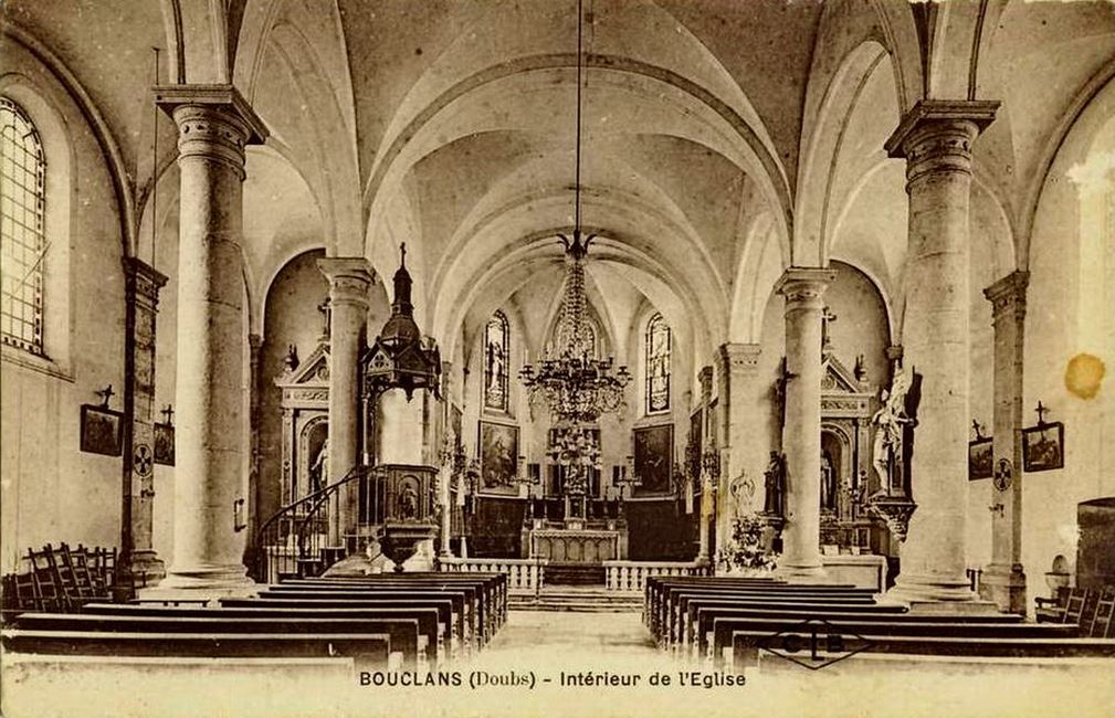 Un écrit datant de 1092 nous apprend l’existence d’une « première » église à Ambre, un des hameaux de Bouclans. Grâce à la générosité du Baron de Bouclans, Jean LALLEMAND, un nouvel édifice est érigé de 1537 à 1541. La première pierre de la « dernière » église Saint Léger de Bouclans, est posée en 1775, réalisée d’après des plans de l'architecte bisontin Ch. COLOMBOT, par un entrepreneur de Bouclans, J-F BERNARD. Il est à noter que le bénitier de pierre, à gauche sous le porche, ainsi qu’une piscine avec encadrement en bas-relief et la dalle funéraire de J. LALLEMAND, proviennent de l’ancien bâtiment.