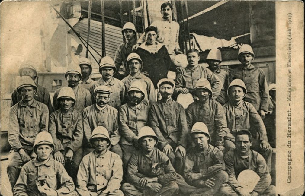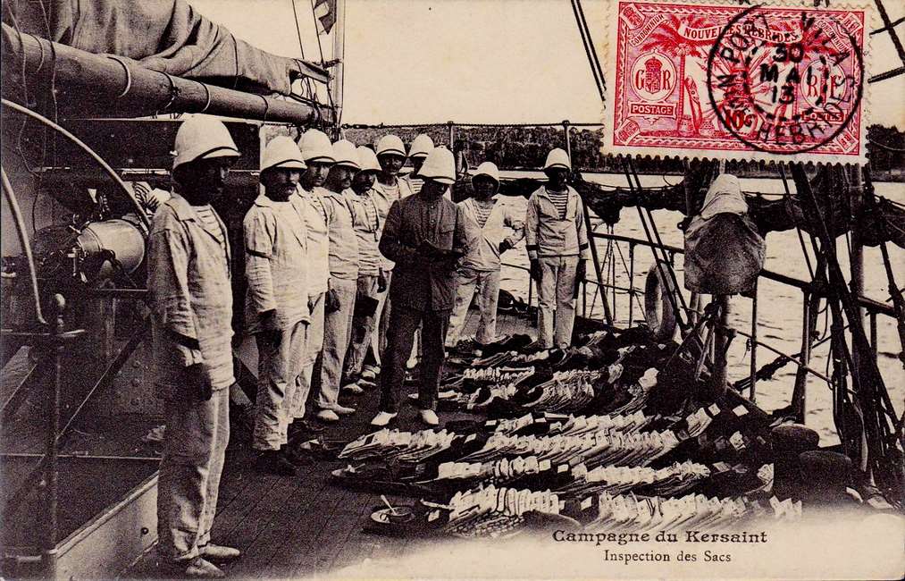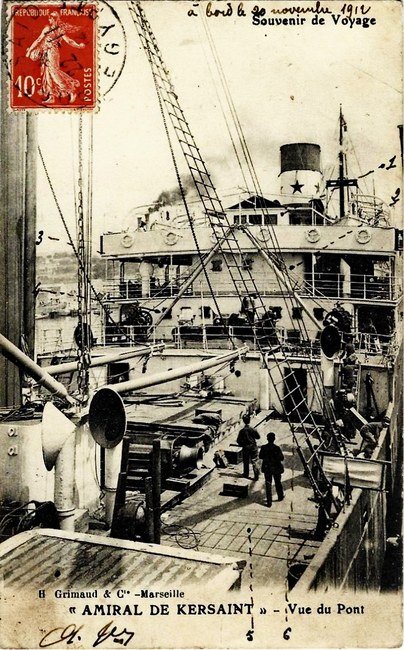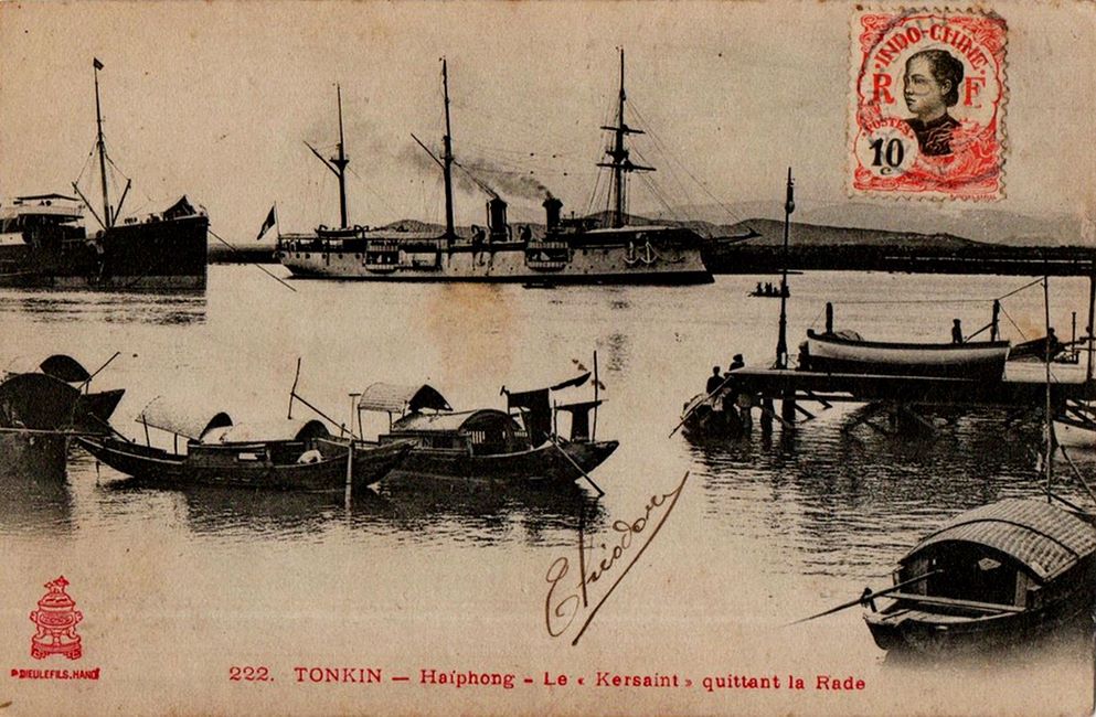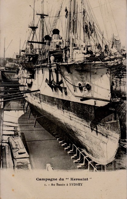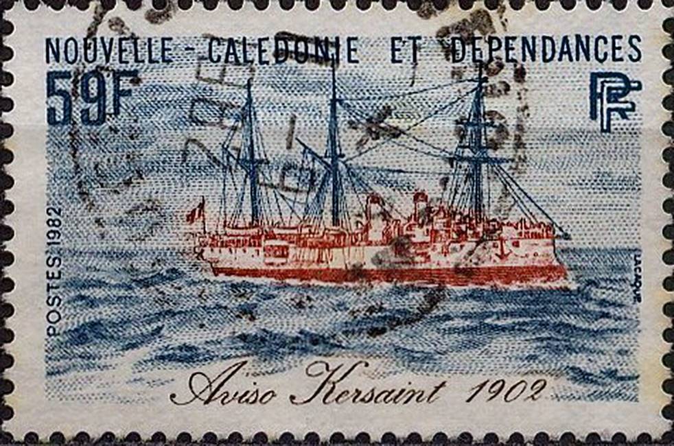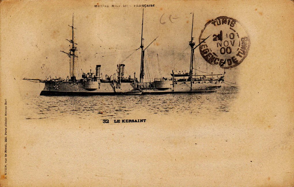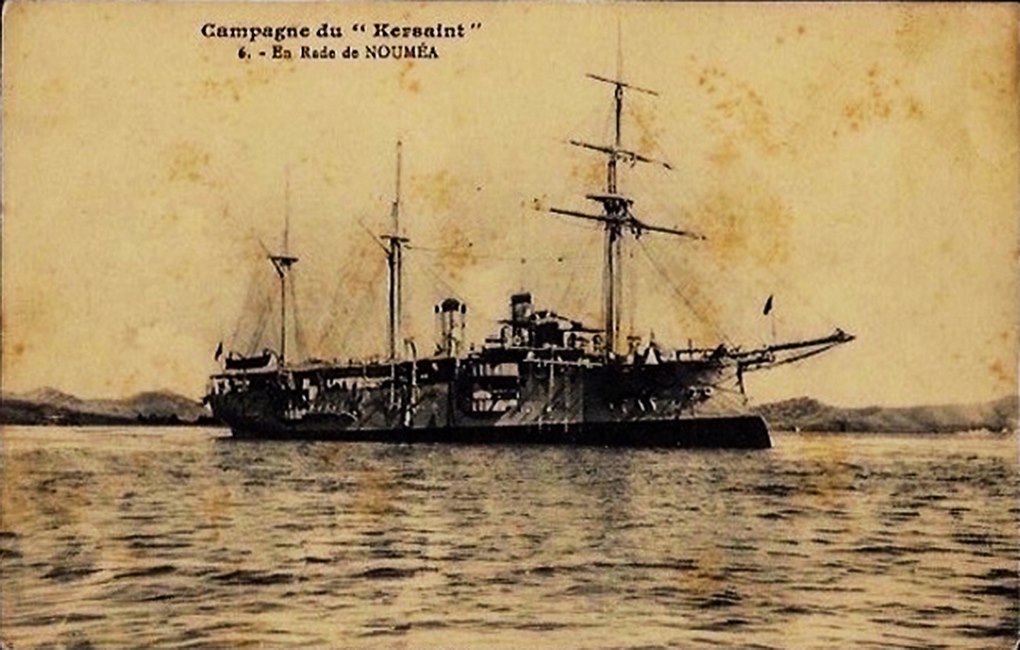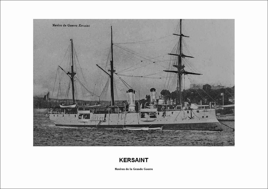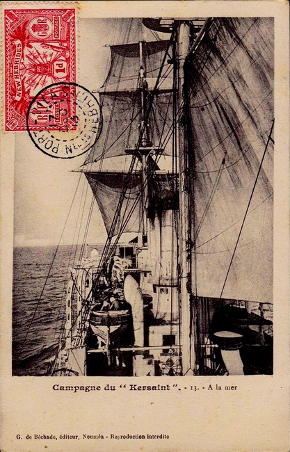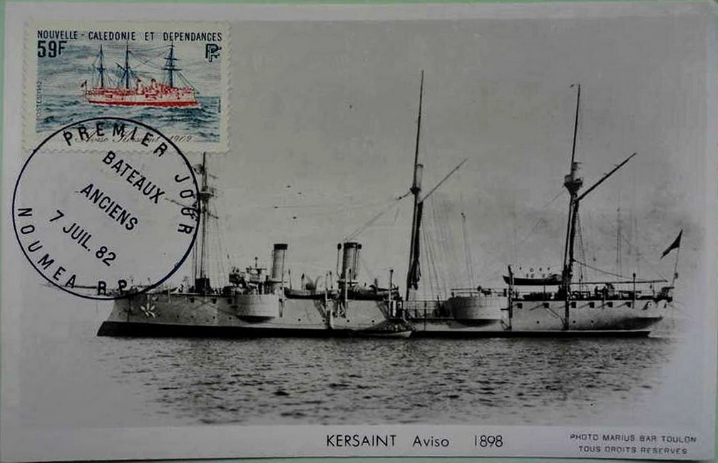 L’aviso Kersaint, l’un des derniers navires de guerre français naviguant à la voile, fut lancé à Rochefort le 28 août 1897. Avec ses 72 mètres de longueur et 11,4 m de largeur, ses deux cheminées, sa coque de croiseur en acier bordée en bois et doublée en cuivre, son beaupré et sa mature (gréement de trois mâts barque, puis de trois mâts goélette) en font un navire destiné aux eaux lointaines d’Extrême-Orient et du Pacifique.