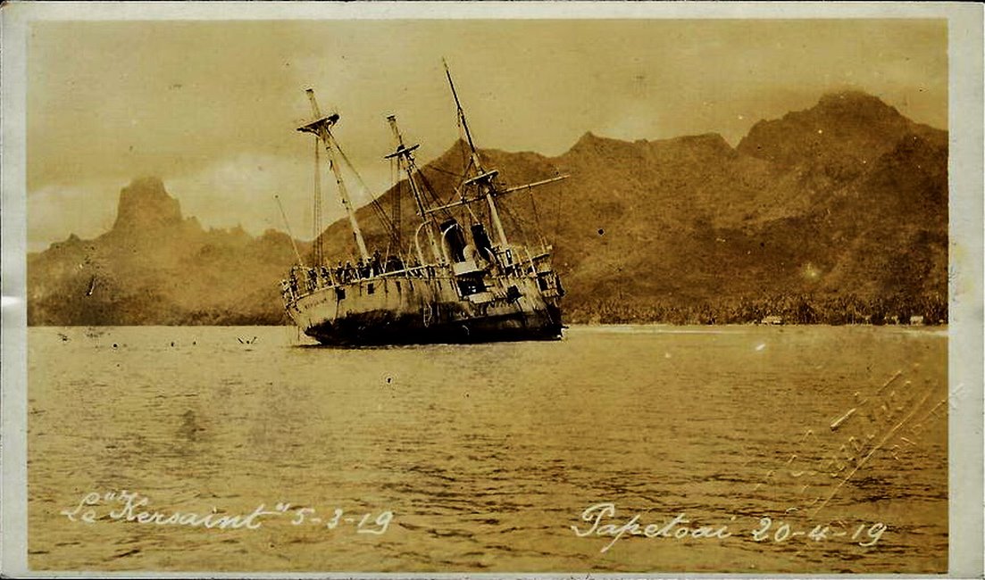 Lors de son second séjour à Tahiti, il s’échoua sur le récif, dans la baie d’Opunohu, le 5 mars 1919. La tentative de désenchouement tentée par le navire néo-zélandais « Flora », sera un échec.