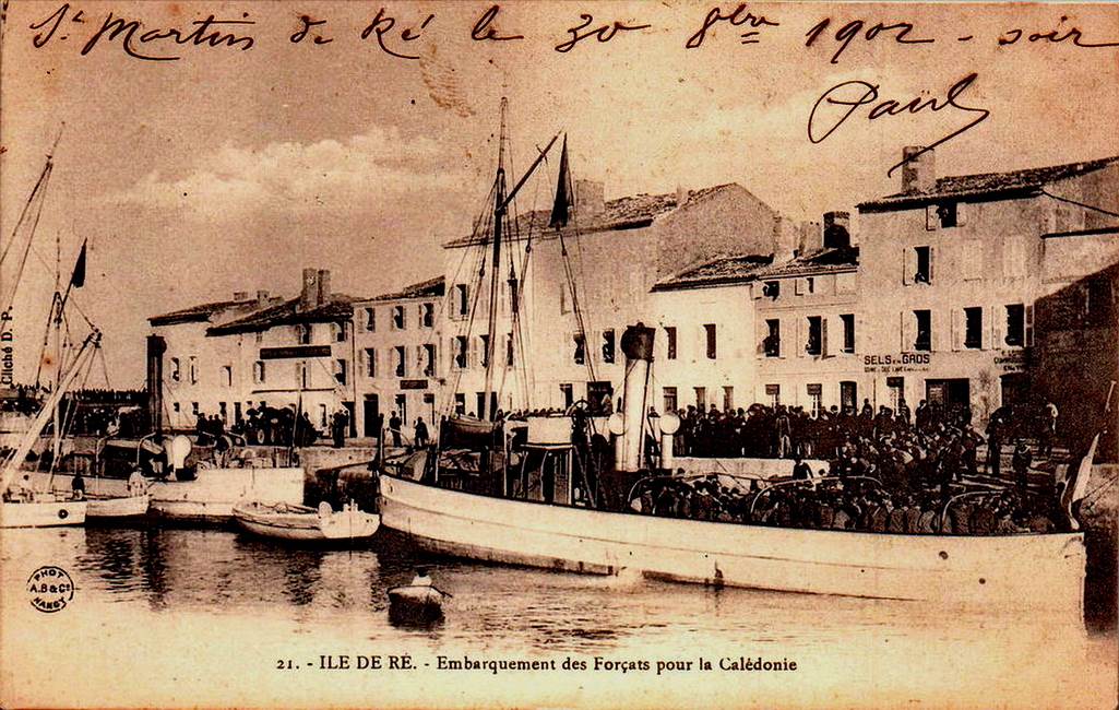 ...Le Phare des Baleines, construit en 1853 et haut de 57 mètres, (à côté de la Tour des baleines d'époque Vauban, 1682), demeure un des monuments notables de l'île, situé à son extrémité ouest, sur la commune de Saint-Clément-des-Baleines. En 1873, la citadelle de Saint-Martin-de-Ré sert d'étape (Bagne de l'île de Ré) pour les condamnés au bagne, notamment vers la Nouvelle-Calédonie puis vers la Guyane de 1897 à 1938. L'île est reliée au continent par un pont construit en 1988 ; jusqu'à cette date, la liaison se faisait par bac. (Wikipedia).