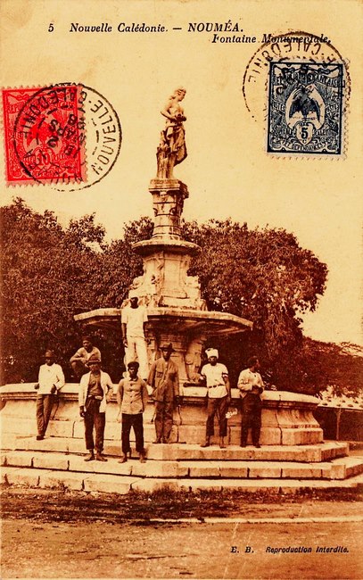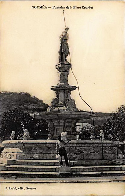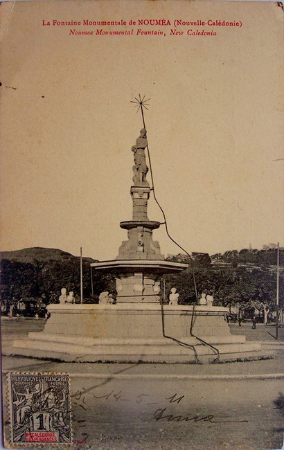 Le projet est examiné le 30 mai 1892, et le 3 juillet, les outils commandés par le sculpteur arrivent de Paris. Les travaux vont durer 4 ans et la fontaine sera inaugurée en 1895. Sur la Place des Cocotiers. (© Nouvelle-Calédonie Tourisme Point Sud)