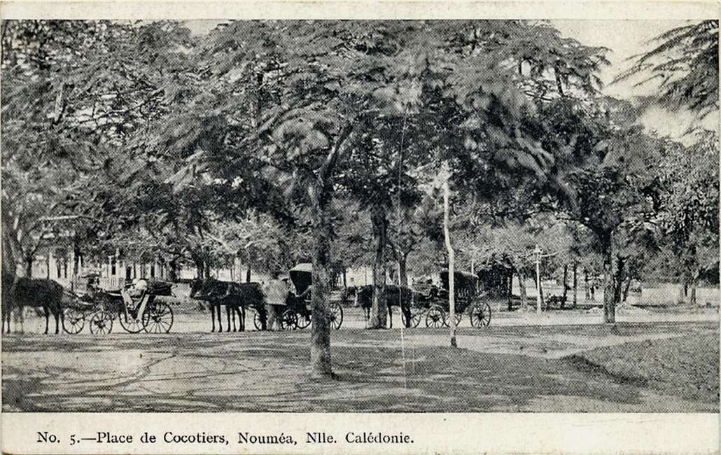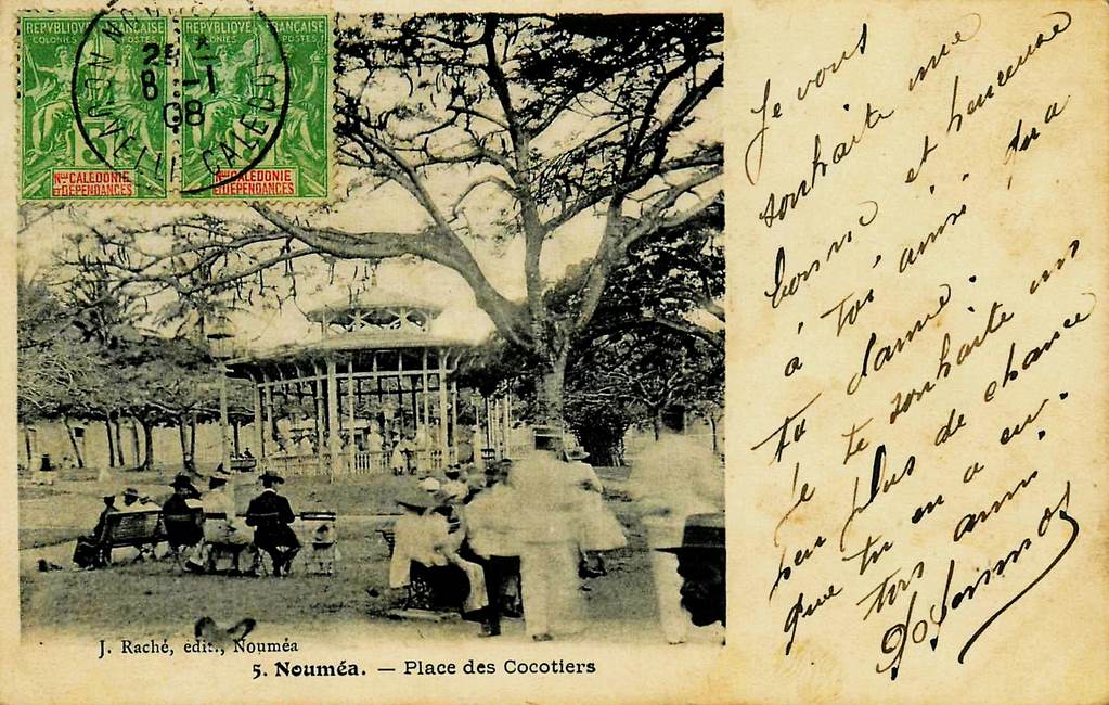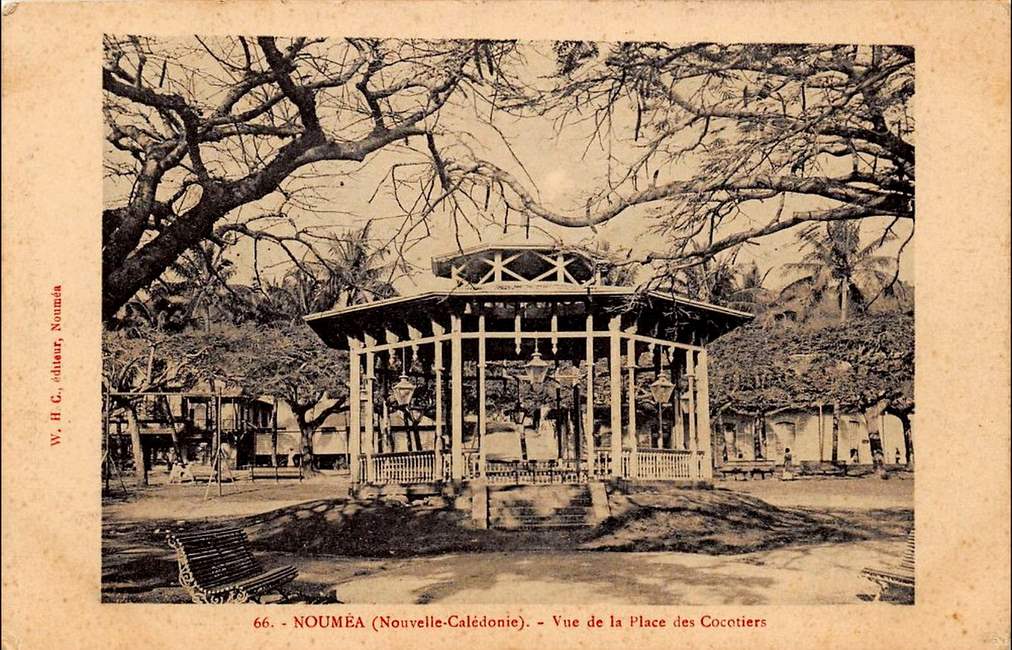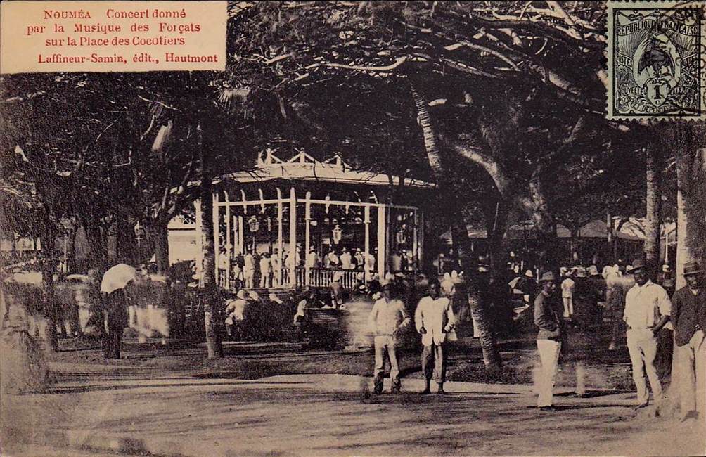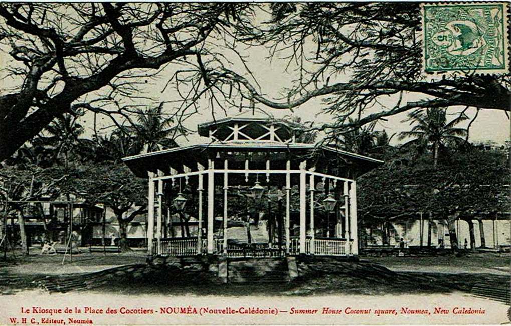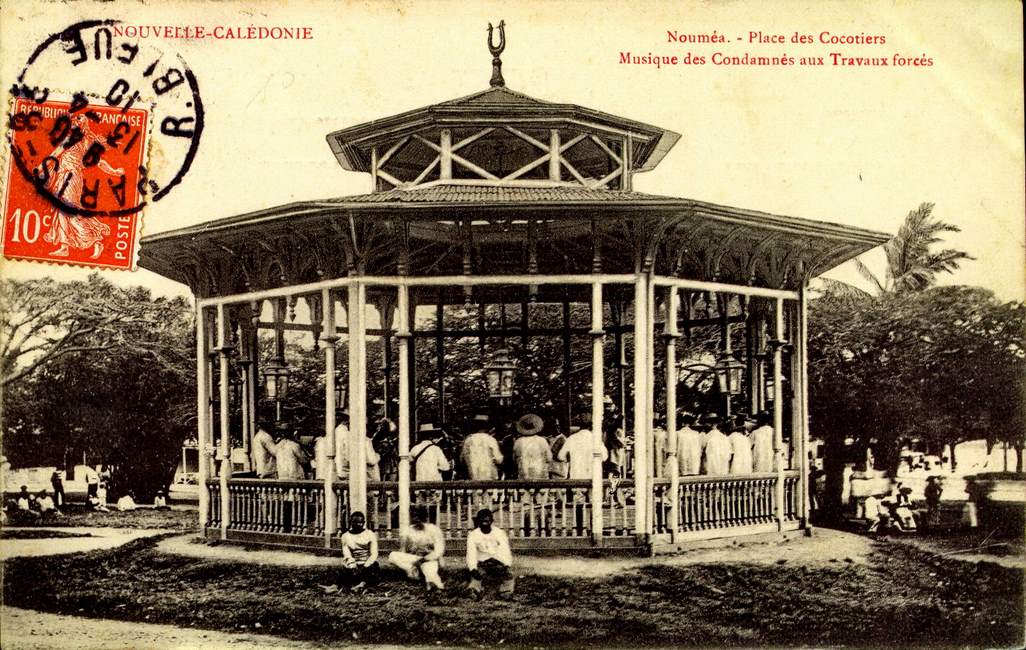 C'est en 1879 que le service des Ponts-et-Chaussées propose d'entreprendre la construction du kiosque à musique de la Place des Cocotiers pour la somme de 3.000 F. Il est l'œuvre des ouvriers de la Transportation.