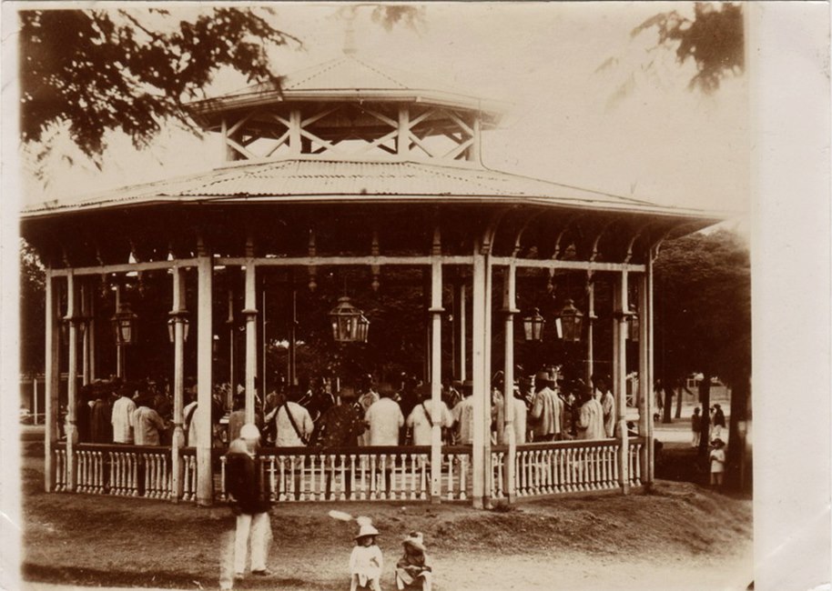 À l'époque, le kiosque accueille tout aussi régulièrement la Lyre calédonienne, la Fanfare municipale et la Fanfare militaire.
